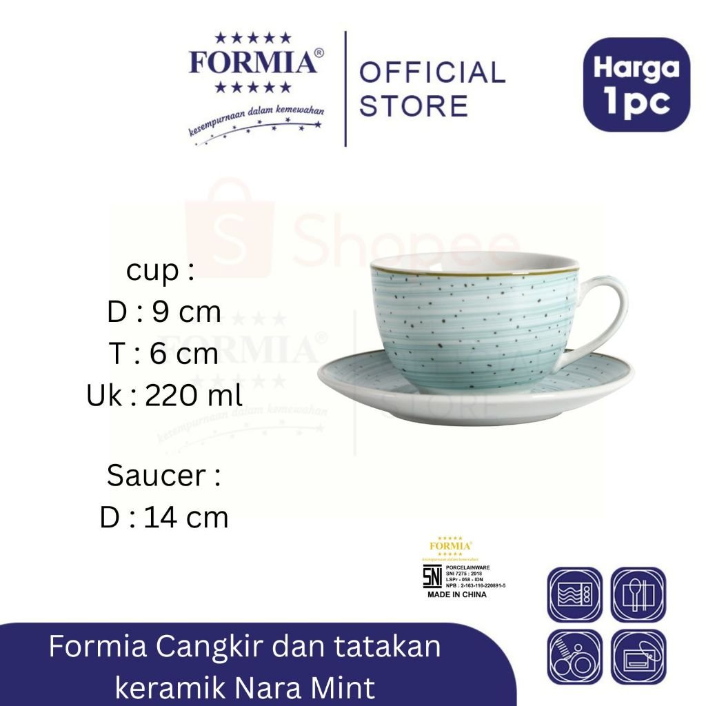 Formia Cangkir & Tatakan Keramik Nara Mint